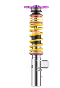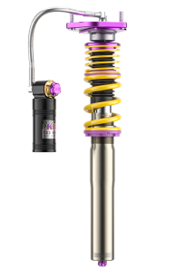 Wilt u de KW V4 Clubsport schroefset, die verkrijgbaar is met een technisch componentenrapport, comfortabeler afstellen voor uw rit op de snelweg naar de Nordschleife of een ander racecircuit, dan kunt u de reboundkrachten eenvoudigweg via de rebound-trapdemping verminderen. Voor de KW V4 Clubsport wordt de gebruikte racetechnologie van de meervoudige overall winnaar van de ADAC Zurich 24h Race Nürburgring nog steeds ondersteund door aluminium unibal top mounts.